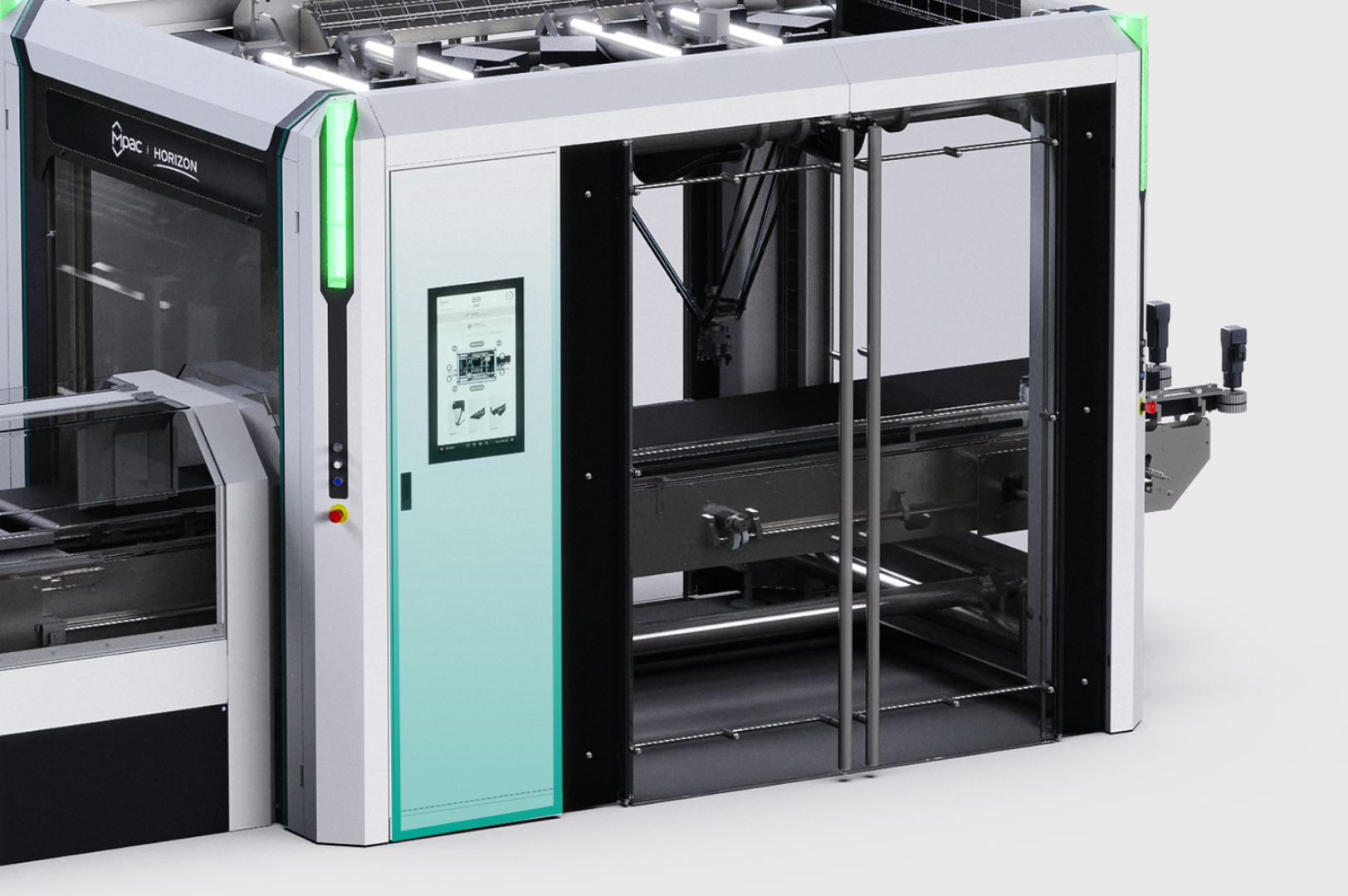 HORIZON redefines packaging automation with its modular design, high-speed Delta robot technology, and intuitive HMI for seamless operation. Its innovative corner light system replaces traditional indicators, enhancing usability and aesthetics. Designed for flexibility and efficiency, HORIZON sets new industry standards in high-performance, user-centric packaging solutions.